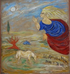 “En la ciudad-museo el amanecer es un caballero de triste figura y sus rayos hacen eco en los muros. En una esquina te observa un ángel y en otra toca la flauta un diablo. Es una ciudad de palabras azules y oscuras golondrinas; de árboles botella y animales fantásticos. En su verticalidad sin vértigo cuelgan calmas las raíces de un castillo. Su subsuelo vetusto esconde las huellas de los saurios de otro tiempo. La ciudad-museo no esconde su arte, los colores serpentean por el suelo bajo la mirada de los gatos. Los ladrillos respiran yeso y frontera. Verás el trío de cruces más de tres veces tres. Y en la ciudad-museo el tiempo se detiene sobre una triada de ilustres manchegos. Las obras se desgranan en la espuma de sus páginas, para permanecer frescas otro siglo más. Otro siglo más.”